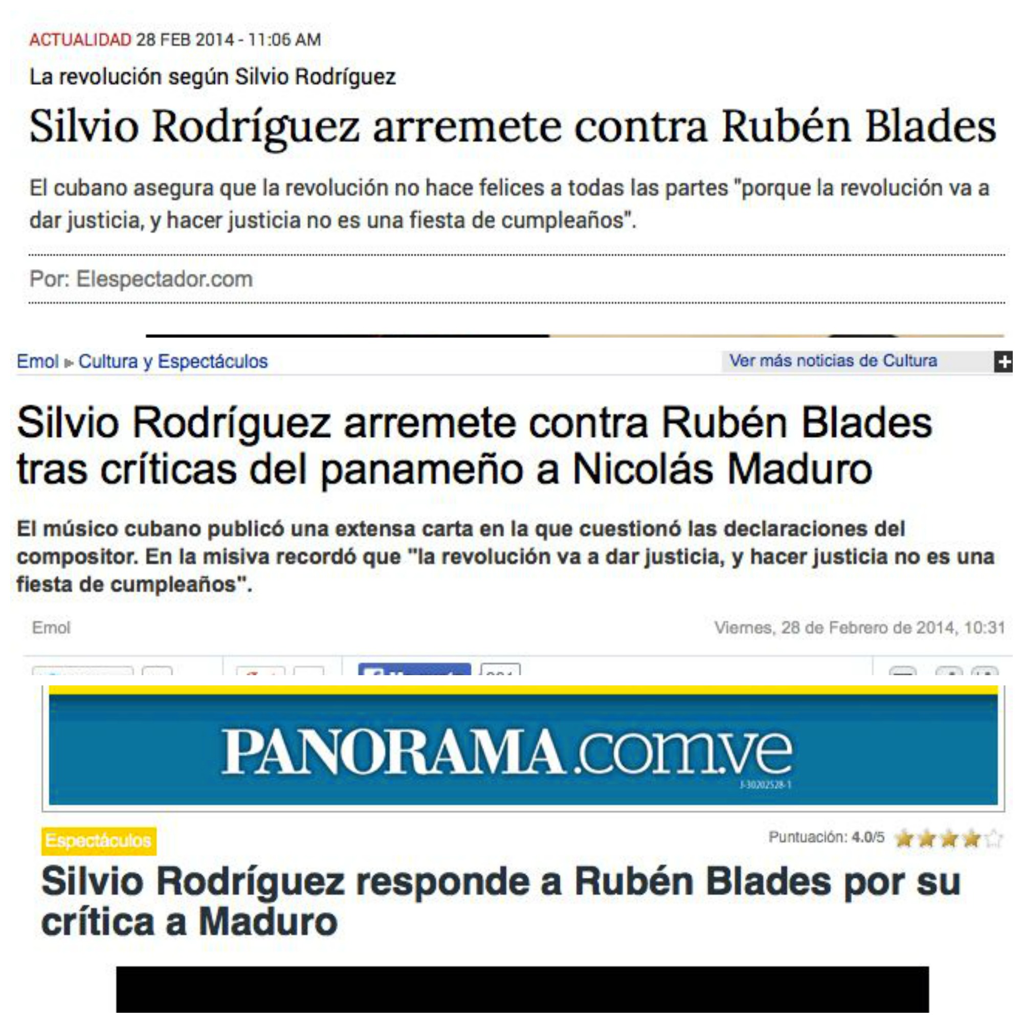 A mediados de febrero comenzó a circular por los medios y las redes sociales el siguiente titular: “Silvio Rodríguez arremete contra Rubén Blades”. Una semana antes el cantautor panameño había publicado en su página web un comentario sobre la complicada y tensa situación política de Venezuela. Escribió sobre la polarización, la desinformación y la panfletería. Criticó a la oposición y al gobierno. Lo más controversial fue que responsabilizó al gobierno de Nicolás Maduro de garantizar la seguridad y los derechos de los venezolanos.